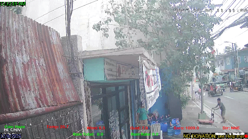1 Rain season in the Philippines: June 1st to Oct 31st.   5 Estimated amount of water needed to replace the water used by plants and evaporation from the past week. (Negative numbers mean amount of water needed, positive numbers mean excess water is present).   6 Air Quality Index is provided by Luftdaten System esp8266 and is updated every 5 mins..   9 Solar Index represents either an absolute scale of solar energy (W/m²) using the station’s recorded maximum or a percentage of computed theoretical solar maximum using the station’s location and time of day. These indices differ most when the sun is low on the horizon. The current scale is shown, and will toggle if it or the icon is clicked.   10 Historical average only to day 8 of just the month of December for this station since 2016.   11 Historical average rain this season to day 8 of December for this station since 2016.