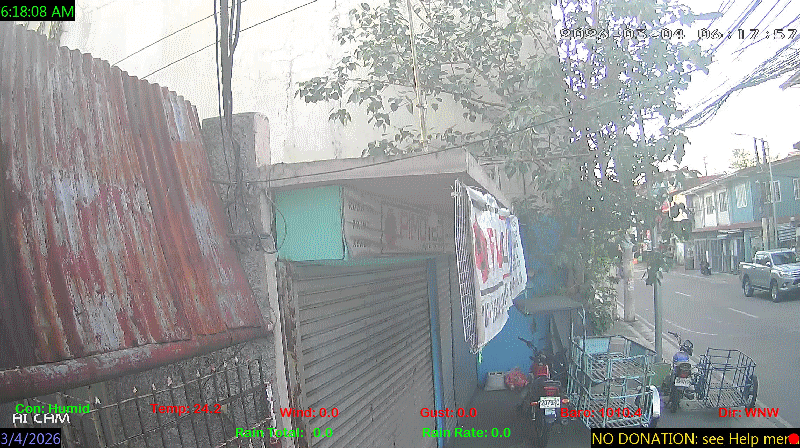 1 Rain season in the Philippines: June 1st to Oct 31st.   5 Estimated amount of water needed to replace the water used by plants and evaporation from the past week. (Negative numbers mean amount of water needed, positive numbers mean excess water is present).   6 Air Quality Index is provided by Luftdaten System esp8266 and is updated every 5 mins..   10 Historical average only to day 4 of just the month of March for this station since 2016.   11 Historical average rain this season to day 4 of March for this station since 2016.