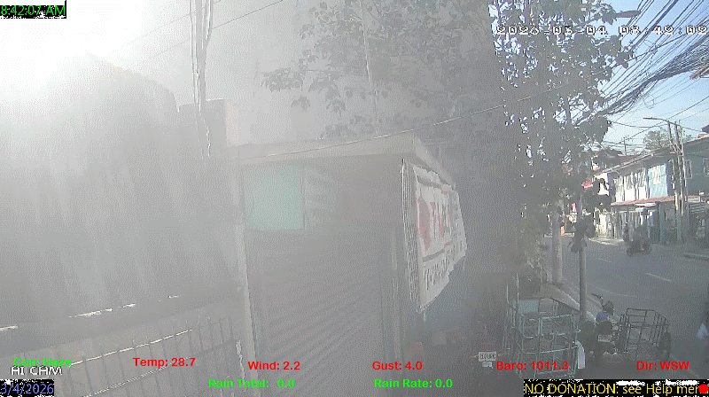 1 Rain season in the Philippines: June 1st to Oct 31st.   5 Estimated amount of water needed to replace the water used by plants and evaporation from the past week. (Negative numbers mean amount of water needed, positive numbers mean excess water is present).   6 Air Quality Index is provided by Luftdaten System esp8266 and is updated every 5 mins..   10 Historical average only to day 4 of just the month of March for this station since 2016.   11 Historical average rain this season to day 4 of March for this station since 2016.