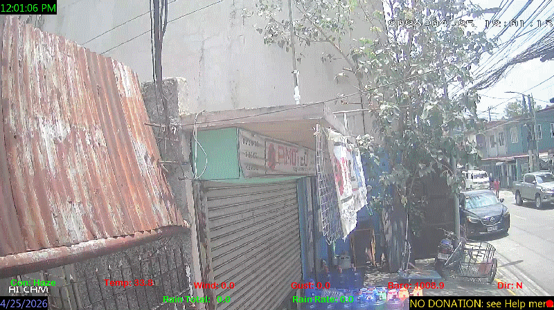 1 Rain season in the Philippines: June 1st to Oct 31st.   5 Estimated amount of water needed to replace the water used by plants and evaporation from the past week. (Negative numbers mean amount of water needed, positive numbers mean excess water is present).   6 Air Quality Index is provided by Luftdaten System esp8266 and is updated every 5 mins..   9 Solar Index represents either an absolute scale of solar energy (W/m²) using the station’s recorded maximum or a percentage of computed theoretical solar maximum using the station’s location and time of day. These indices differ most when the sun is low on the horizon. The current scale is shown, and will toggle if it or the icon is clicked.   10 Historical average only to day 25 of just the month of April for this station since 2017.   11 Historical average rain this season to day 25 of April for this station since 2017.