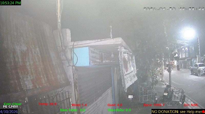 1 Rain season in the Philippines: June 1st to Oct 31st.   5 Estimated amount of water needed to replace the water used by plants and evaporation from the past week. (Negative numbers mean amount of water needed, positive numbers mean excess water is present).   6 Air Quality Index is provided by Luftdaten System esp8266 and is updated every 5 mins..   10 Historical average only to day 30 of just the month of April for this station since 2017.   11 Historical average rain this season to day 30 of April for this station since 2017.