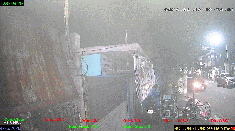 1 Rain season in the Philippines: June 1st to Oct 31st.   5 Estimated amount of water needed to replace the water used by plants and evaporation from the past week. (Negative numbers mean amount of water needed, positive numbers mean excess water is present).   6 Air Quality Index is provided by Luftdaten System esp8266 and is updated every 5 mins..   10 Historical average only to day 26 of just the month of April for this station since 2017.   11 Historical average rain this season to day 26 of April for this station since 2017.