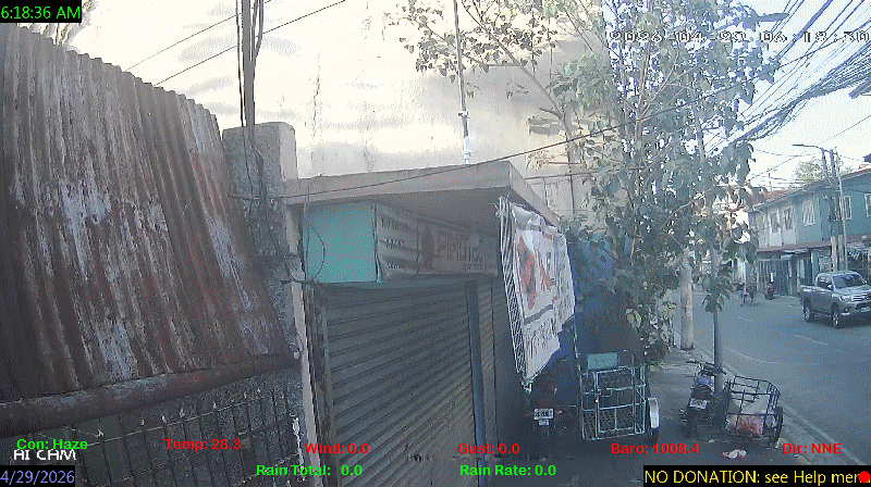1 Rain season in the Philippines: June 1st to Oct 31st.   5 Estimated amount of water needed to replace the water used by plants and evaporation from the past week. (Negative numbers mean amount of water needed, positive numbers mean excess water is present).   6 Air Quality Index is provided by Luftdaten System esp8266 and is updated every 5 mins..   10 Historical average only to day 29 of just the month of April for this station since 2017.   11 Historical average rain this season to day 29 of April for this station since 2017.