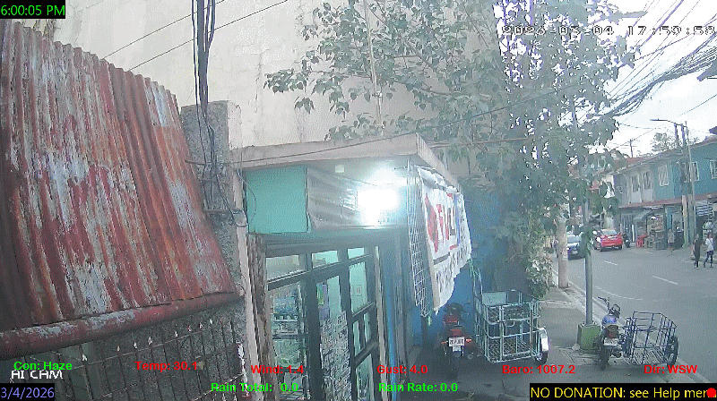 1 Rain season in the Philippines: June 1st to Oct 31st.   5 Estimated amount of water needed to replace the water used by plants and evaporation from the past week. (Negative numbers mean amount of water needed, positive numbers mean excess water is present).   6 Air Quality Index is provided by Luftdaten System esp8266 and is updated every 5 mins..   9 Solar Index represents either an absolute scale of solar energy (W/m²) using the station’s recorded maximum or a percentage of computed theoretical solar maximum using the station’s location and time of day. These indices differ most when the sun is low on the horizon. The current scale is shown, and will toggle if it or the icon is clicked.   10 Historical average only to day 4 of just the month of March for this station since 2016.   11 Historical average rain this season to day 4 of March for this station since 2016.