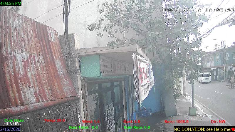 1 Rain season in the Philippines: June 1st to Oct 31st.   5 Estimated amount of water needed to replace the water used by plants and evaporation from the past week. (Negative numbers mean amount of water needed, positive numbers mean excess water is present).   6 Air Quality Index is provided by Luftdaten System esp8266 and is updated every 5 mins..   9 Solar Index represents either an absolute scale of solar energy (W/m²) using the station’s recorded maximum or a percentage of computed theoretical solar maximum using the station’s location and time of day. These indices differ most when the sun is low on the horizon. The current scale is shown, and will toggle if it or the icon is clicked.   10 Historical average only to day 16 of just the month of February for this station since 2016.   11 Historical average rain this season to day 16 of February for this station since 2016.