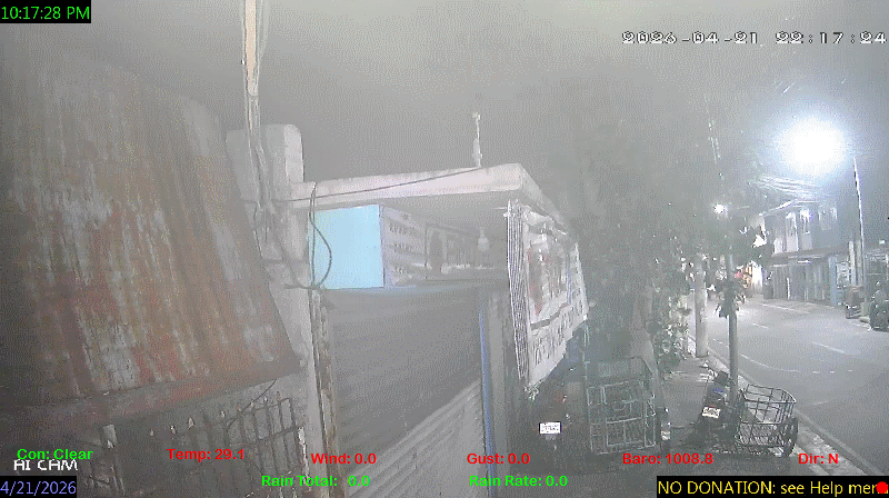 1 Rain season in the Philippines: June 1st to Oct 31st.   5 Estimated amount of water needed to replace the water used by plants and evaporation from the past week. (Negative numbers mean amount of water needed, positive numbers mean excess water is present).   6 Air Quality Index is provided by Luftdaten System esp8266 and is updated every 5 mins..   10 Historical average only to day 21 of just the month of April for this station since 2017.   11 Historical average rain this season to day 21 of April for this station since 2017.