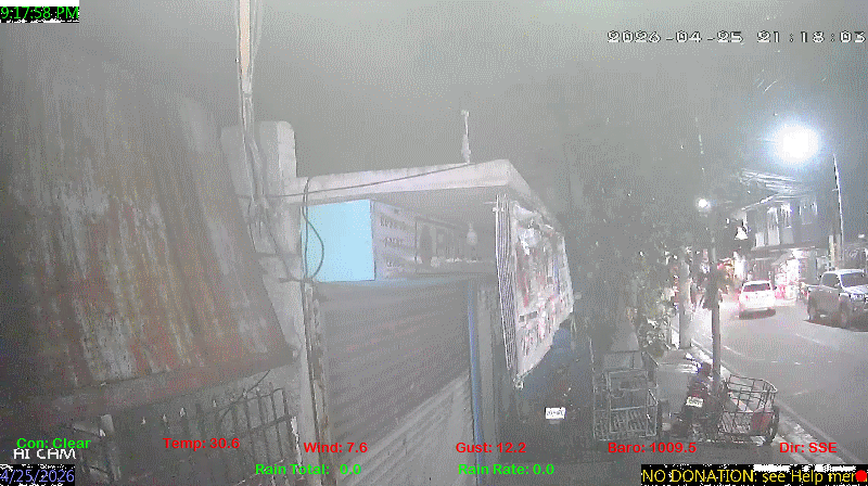 1 Rain season in the Philippines: June 1st to Oct 31st.   5 Estimated amount of water needed to replace the water used by plants and evaporation from the past week. (Negative numbers mean amount of water needed, positive numbers mean excess water is present).   6 Air Quality Index is provided by Luftdaten System esp8266 and is updated every 5 mins..   10 Historical average only to day 24 of just the month of April for this station since 2017.   11 Historical average rain this season to day 24 of April for this station since 2017.