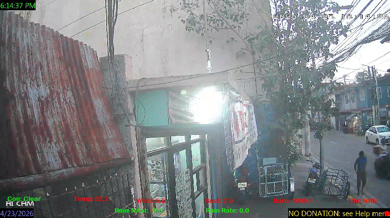 1 Rain season in the Philippines: June 1st to Oct 31st.   5 Estimated amount of water needed to replace the water used by plants and evaporation from the past week. (Negative numbers mean amount of water needed, positive numbers mean excess water is present).   6 Air Quality Index is provided by Luftdaten System esp8266 and is updated every 5 mins..   10 Historical average only to day 22 of just the month of April for this station since 2017.   11 Historical average rain this season to day 22 of April for this station since 2017.