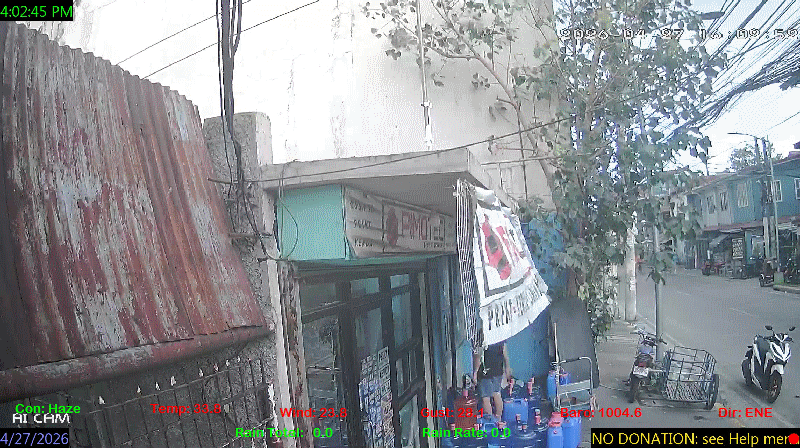 1 Rain season in the Philippines: June 1st to Oct 31st.   5 Estimated amount of water needed to replace the water used by plants and evaporation from the past week. (Negative numbers mean amount of water needed, positive numbers mean excess water is present).   6 Air Quality Index is provided by Luftdaten System esp8266 and is updated every 5 mins..   9 Solar Index represents either an absolute scale of solar energy (W/m²) using the station’s recorded maximum or a percentage of computed theoretical solar maximum using the station’s location and time of day. These indices differ most when the sun is low on the horizon. The current scale is shown, and will toggle if it or the icon is clicked.   10 Historical average only to day 27 of just the month of April for this station since 2017.   11 Historical average rain this season to day 27 of April for this station since 2017.