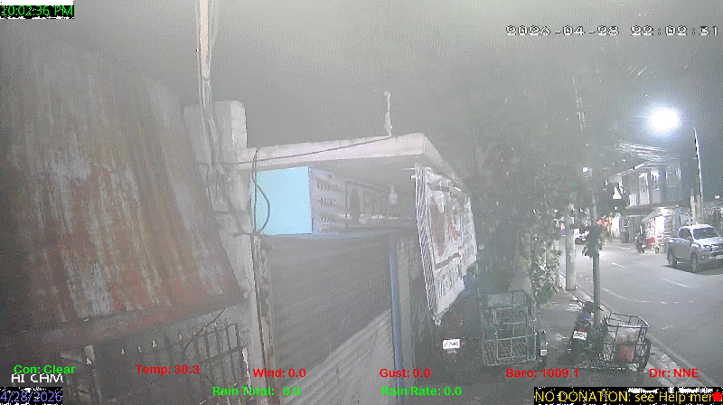 1 Rain season in the Philippines: June 1st to Oct 31st.   5 Estimated amount of water needed to replace the water used by plants and evaporation from the past week. (Negative numbers mean amount of water needed, positive numbers mean excess water is present).   6 Air Quality Index is provided by Luftdaten System esp8266 and is updated every 5 mins..   9 Solar Index represents either an absolute scale of solar energy (W/m²) using the station’s recorded maximum or a percentage of computed theoretical solar maximum using the station’s location and time of day. These indices differ most when the sun is low on the horizon. The current scale is shown, and will toggle if it or the icon is clicked.   10 Historical average only to day 28 of just the month of April for this station since 2017.   11 Historical average rain this season to day 28 of April for this station since 2017.