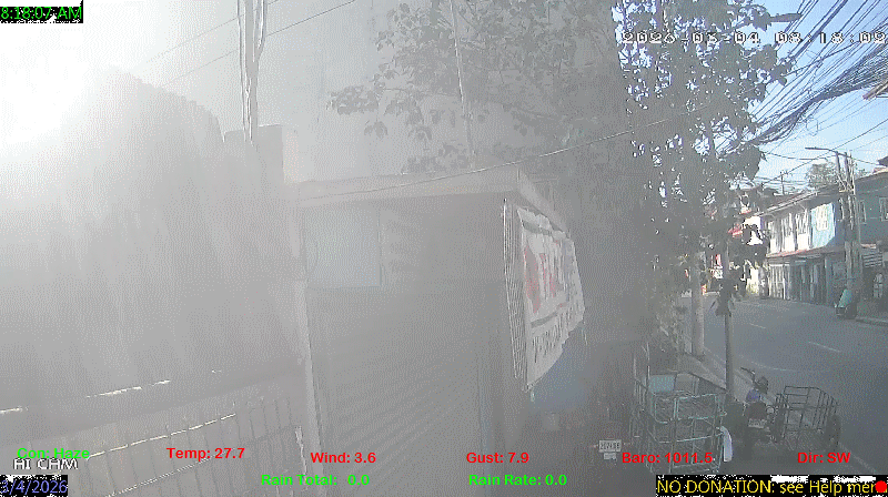 1 Rain season in the Philippines: June 1st to Oct 31st.   5 Estimated amount of water needed to replace the water used by plants and evaporation from the past week. (Negative numbers mean amount of water needed, positive numbers mean excess water is present).   6 Air Quality Index is provided by Luftdaten System esp8266 and is updated every 5 mins..   10 Historical average only to day 4 of just the month of March for this station since 2016.   11 Historical average rain this season to day 4 of March for this station since 2016.