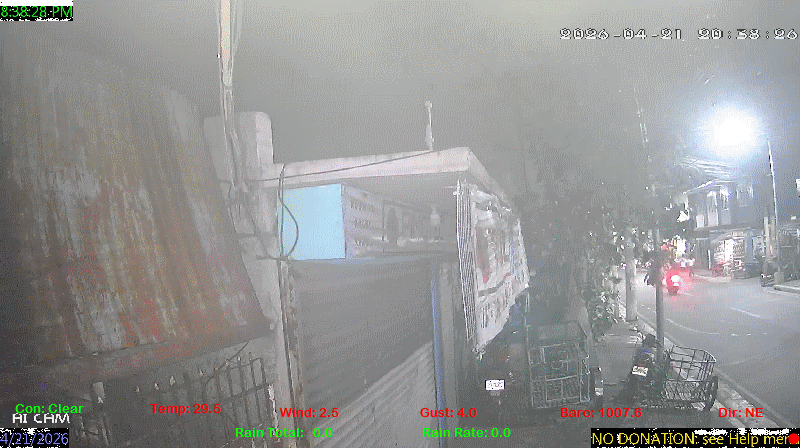 1 Rain season in the Philippines: June 1st to Oct 31st.   5 Estimated amount of water needed to replace the water used by plants and evaporation from the past week. (Negative numbers mean amount of water needed, positive numbers mean excess water is present).   6 Air Quality Index is provided by Luftdaten System esp8266 and is updated every 5 mins..   10 Historical average only to day 21 of just the month of April for this station since 2017.   11 Historical average rain this season to day 21 of April for this station since 2017.