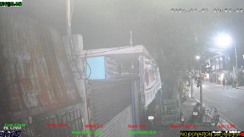 1 Rain season in the Philippines: June 1st to Oct 31st.   5 Estimated amount of water needed to replace the water used by plants and evaporation from the past week. (Negative numbers mean amount of water needed, positive numbers mean excess water is present).   6 Air Quality Index is provided by Luftdaten System esp8266 and is updated every 5 mins..   10 Historical average only to day 21 of just the month of April for this station since 2017.   11 Historical average rain this season to day 21 of April for this station since 2017.