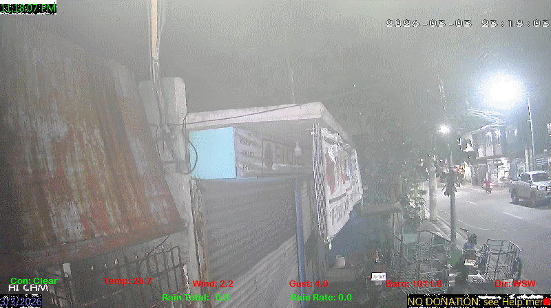 1 Rain season in the Philippines: June 1st to Oct 31st.   5 Estimated amount of water needed to replace the water used by plants and evaporation from the past week. (Negative numbers mean amount of water needed, positive numbers mean excess water is present).   6 Air Quality Index is provided by Luftdaten System esp8266 and is updated every 5 mins..   9 Solar Index represents either an absolute scale of solar energy (W/m²) using the station’s recorded maximum or a percentage of computed theoretical solar maximum using the station’s location and time of day. These indices differ most when the sun is low on the horizon. The current scale is shown, and will toggle if it or the icon is clicked.   10 Historical average only to day 3 of just the month of March for this station since 2016.   11 Historical average rain this season to day 3 of March for this station since 2016.