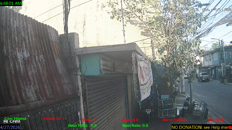 1 Rain season in the Philippines: June 1st to Oct 31st.   5 Estimated amount of water needed to replace the water used by plants and evaporation from the past week. (Negative numbers mean amount of water needed, positive numbers mean excess water is present).   6 Air Quality Index is provided by Luftdaten System esp8266 and is updated every 5 mins..   10 Historical average only to day 27 of just the month of April for this station since 2017.   11 Historical average rain this season to day 27 of April for this station since 2017.