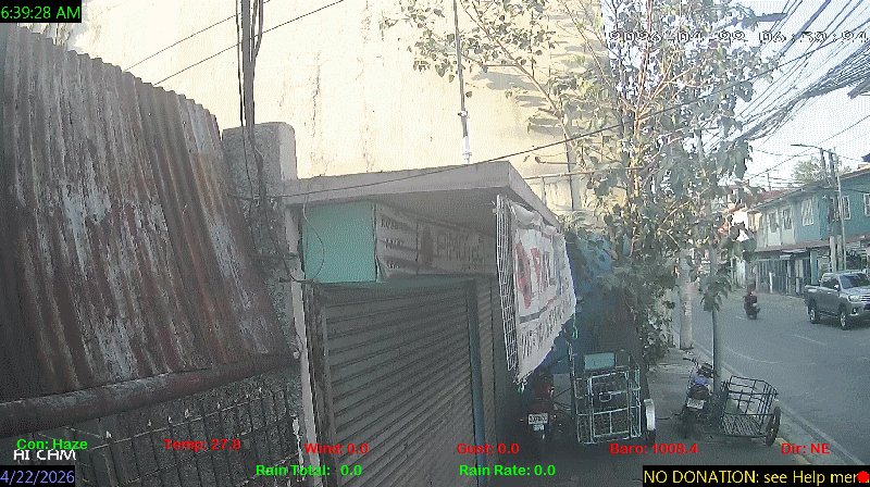 1 Rain season in the Philippines: June 1st to Oct 31st.   5 Estimated amount of water needed to replace the water used by plants and evaporation from the past week. (Negative numbers mean amount of water needed, positive numbers mean excess water is present).   6 Air Quality Index is provided by Luftdaten System esp8266 and is updated every 5 mins..   10 Historical average only to day 22 of just the month of April for this station since 2017.   11 Historical average rain this season to day 22 of April for this station since 2017.