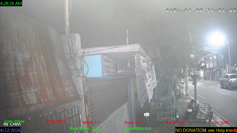 1 Rain season in the Philippines: June 1st to Oct 31st.   5 Estimated amount of water needed to replace the water used by plants and evaporation from the past week. (Negative numbers mean amount of water needed, positive numbers mean excess water is present).   6 Air Quality Index is provided by Luftdaten System esp8266 and is updated every 5 mins..   10 Historical average only to day 22 of just the month of April for this station since 2017.   11 Historical average rain this season to day 22 of April for this station since 2017.
