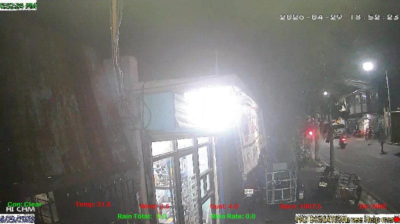 1 Rain season in the Philippines: June 1st to Oct 31st.   5 Estimated amount of water needed to replace the water used by plants and evaporation from the past week. (Negative numbers mean amount of water needed, positive numbers mean excess water is present).   6 Air Quality Index is provided by Luftdaten System esp8266 and is updated every 5 mins..   9 Solar Index represents either an absolute scale of solar energy (W/m²) using the station’s recorded maximum or a percentage of computed theoretical solar maximum using the station’s location and time of day. These indices differ most when the sun is low on the horizon. The current scale is shown, and will toggle if it or the icon is clicked.   10 Historical average only to day 29 of just the month of April for this station since 2017.   11 Historical average rain this season to day 29 of April for this station since 2017.