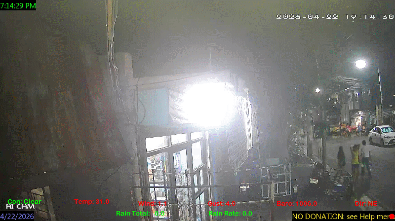 1 Rain season in the Philippines: June 1st to Oct 31st.   5 Estimated amount of water needed to replace the water used by plants and evaporation from the past week. (Negative numbers mean amount of water needed, positive numbers mean excess water is present).   6 Air Quality Index is provided by Luftdaten System esp8266 and is updated every 5 mins..   9 Solar Index represents either an absolute scale of solar energy (W/m²) using the station’s recorded maximum or a percentage of computed theoretical solar maximum using the station’s location and time of day. These indices differ most when the sun is low on the horizon. The current scale is shown, and will toggle if it or the icon is clicked.   10 Historical average only to day 22 of just the month of April for this station since 2017.   11 Historical average rain this season to day 22 of April for this station since 2017.