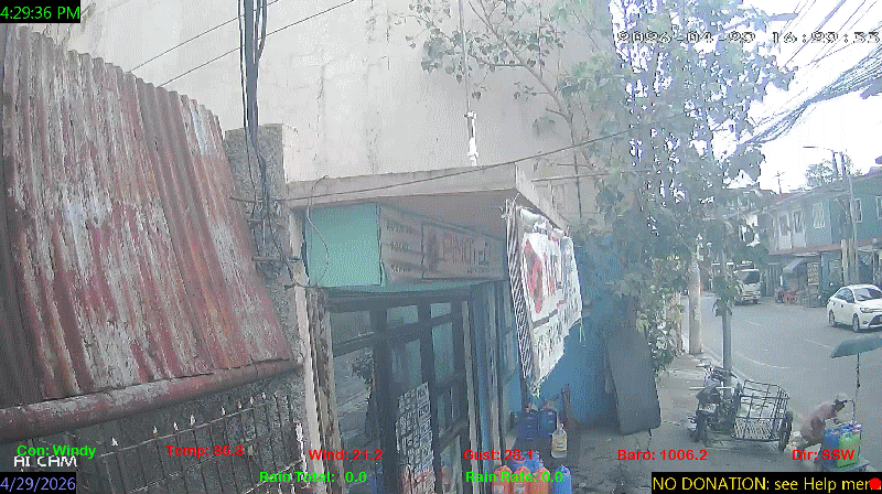 1 Rain season in the Philippines: June 1st to Oct 31st.   5 Estimated amount of water needed to replace the water used by plants and evaporation from the past week. (Negative numbers mean amount of water needed, positive numbers mean excess water is present).   6 Air Quality Index is provided by Luftdaten System esp8266 and is updated every 5 mins..   10 Historical average only to day 28 of just the month of April for this station since 2017.   11 Historical average rain this season to day 28 of April for this station since 2017.