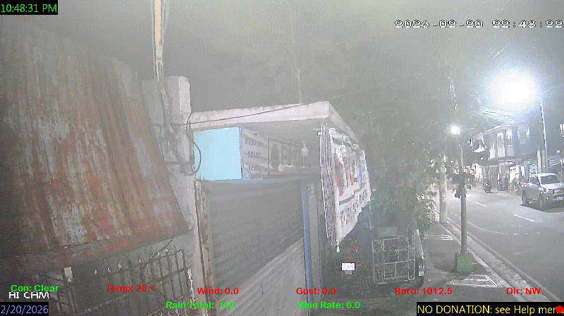 1 Rain season in the Philippines: June 1st to Oct 31st.   5 Estimated amount of water needed to replace the water used by plants and evaporation from the past week. (Negative numbers mean amount of water needed, positive numbers mean excess water is present).   6 Air Quality Index is provided by Luftdaten System esp8266 and is updated every 5 mins..   9 Solar Index represents either an absolute scale of solar energy (W/m²) using the station’s recorded maximum or a percentage of computed theoretical solar maximum using the station’s location and time of day. These indices differ most when the sun is low on the horizon. The current scale is shown, and will toggle if it or the icon is clicked.   10 Historical average only to day 20 of just the month of February for this station since 2016.   11 Historical average rain this season to day 20 of February for this station since 2016.