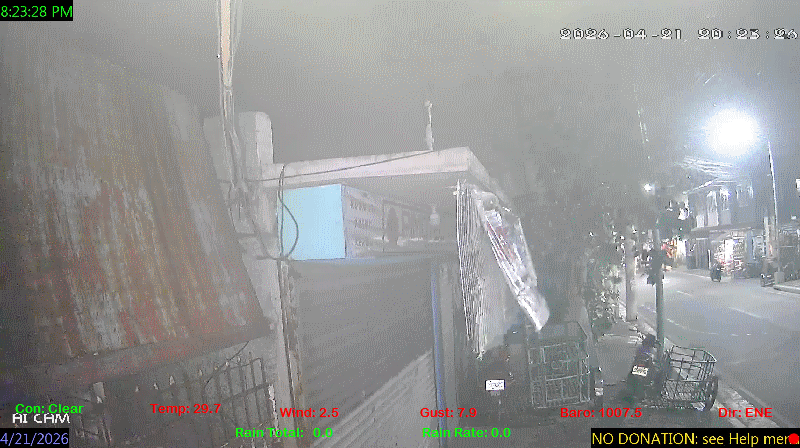 1 Rain season in the Philippines: June 1st to Oct 31st.   5 Estimated amount of water needed to replace the water used by plants and evaporation from the past week. (Negative numbers mean amount of water needed, positive numbers mean excess water is present).   6 Air Quality Index is provided by Luftdaten System esp8266 and is updated every 5 mins..   10 Historical average only to day 21 of just the month of April for this station since 2017.   11 Historical average rain this season to day 21 of April for this station since 2017.