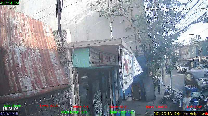 1 Rain season in the Philippines: June 1st to Oct 31st.   5 Estimated amount of water needed to replace the water used by plants and evaporation from the past week. (Negative numbers mean amount of water needed, positive numbers mean excess water is present).   6 Air Quality Index is provided by Luftdaten System esp8266 and is updated every 5 mins..   10 Historical average only to day 24 of just the month of April for this station since 2017.   11 Historical average rain this season to day 24 of April for this station since 2017.