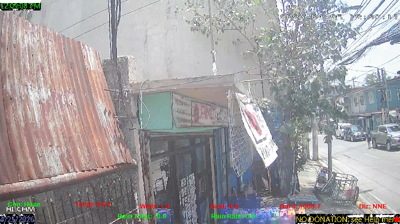 1 Rain season in the Philippines: June 1st to Oct 31st.   5 Estimated amount of water needed to replace the water used by plants and evaporation from the past week. (Negative numbers mean amount of water needed, positive numbers mean excess water is present).   6 Air Quality Index is provided by Luftdaten System esp8266 and is updated every 5 mins..   9 Solar Index represents either an absolute scale of solar energy (W/m²) using the station’s recorded maximum or a percentage of computed theoretical solar maximum using the station’s location and time of day. These indices differ most when the sun is low on the horizon. The current scale is shown, and will toggle if it or the icon is clicked.   10 Historical average only to day 25 of just the month of April for this station since 2017.   11 Historical average rain this season to day 25 of April for this station since 2017.