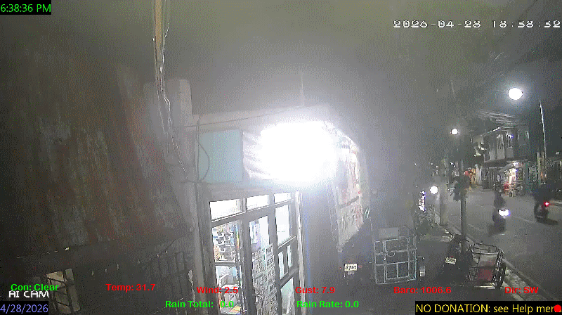 1 Rain season in the Philippines: June 1st to Oct 31st.   5 Estimated amount of water needed to replace the water used by plants and evaporation from the past week. (Negative numbers mean amount of water needed, positive numbers mean excess water is present).   6 Air Quality Index is provided by Luftdaten System esp8266 and is updated every 5 mins..   10 Historical average only to day 27 of just the month of April for this station since 2017.   11 Historical average rain this season to day 27 of April for this station since 2017.