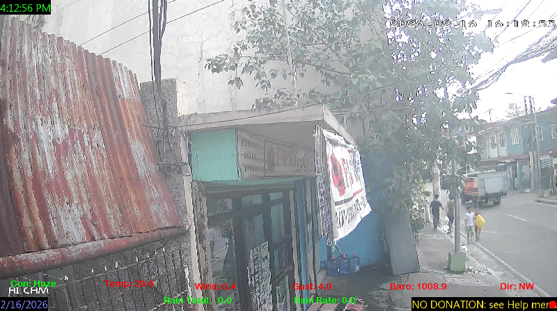 1 Rain season in the Philippines: June 1st to Oct 31st.   5 Estimated amount of water needed to replace the water used by plants and evaporation from the past week. (Negative numbers mean amount of water needed, positive numbers mean excess water is present).   6 Air Quality Index is provided by Luftdaten System esp8266 and is updated every 5 mins..   9 Solar Index represents either an absolute scale of solar energy (W/m²) using the station’s recorded maximum or a percentage of computed theoretical solar maximum using the station’s location and time of day. These indices differ most when the sun is low on the horizon. The current scale is shown, and will toggle if it or the icon is clicked.   10 Historical average only to day 16 of just the month of February for this station since 2016.   11 Historical average rain this season to day 16 of February for this station since 2016.