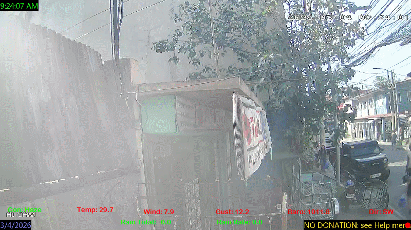 1 Rain season in the Philippines: June 1st to Oct 31st.   5 Estimated amount of water needed to replace the water used by plants and evaporation from the past week. (Negative numbers mean amount of water needed, positive numbers mean excess water is present).   6 Air Quality Index is provided by Luftdaten System esp8266 and is updated every 5 mins..   10 Historical average only to day 4 of just the month of March for this station since 2016.   11 Historical average rain this season to day 4 of March for this station since 2016.