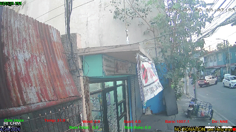 1 Rain season in the Philippines: June 1st to Oct 31st.   5 Estimated amount of water needed to replace the water used by plants and evaporation from the past week. (Negative numbers mean amount of water needed, positive numbers mean excess water is present).   6 Air Quality Index is provided by Luftdaten System esp8266 and is updated every 5 mins..   9 Solar Index represents either an absolute scale of solar energy (W/m²) using the station’s recorded maximum or a percentage of computed theoretical solar maximum using the station’s location and time of day. These indices differ most when the sun is low on the horizon. The current scale is shown, and will toggle if it or the icon is clicked.   10 Historical average only to day 29 of just the month of April for this station since 2017.   11 Historical average rain this season to day 29 of April for this station since 2017.
