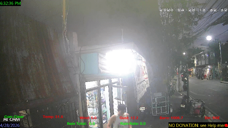 1 Rain season in the Philippines: June 1st to Oct 31st.   5 Estimated amount of water needed to replace the water used by plants and evaporation from the past week. (Negative numbers mean amount of water needed, positive numbers mean excess water is present).   6 Air Quality Index is provided by Luftdaten System esp8266 and is updated every 5 mins..   10 Historical average only to day 27 of just the month of April for this station since 2017.   11 Historical average rain this season to day 27 of April for this station since 2017.