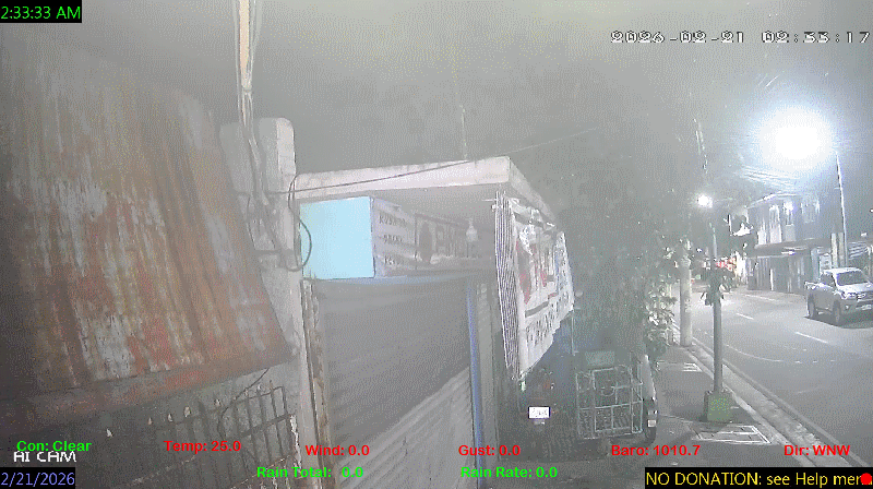 1 Rain season in the Philippines: June 1st to Oct 31st.   5 Estimated amount of water needed to replace the water used by plants and evaporation from the past week. (Negative numbers mean amount of water needed, positive numbers mean excess water is present).   6 Air Quality Index is provided by Luftdaten System esp8266 and is updated every 5 mins..   10 Historical average only to day 20 of just the month of February for this station since 2016.   11 Historical average rain this season to day 20 of February for this station since 2016.