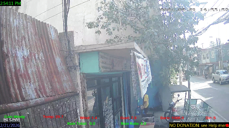 1 Rain season in the Philippines: June 1st to Oct 31st.   5 Estimated amount of water needed to replace the water used by plants and evaporation from the past week. (Negative numbers mean amount of water needed, positive numbers mean excess water is present).   6 Air Quality Index is provided by Luftdaten System esp8266 and is updated every 5 mins..   9 Solar Index represents either an absolute scale of solar energy (W/m²) using the station’s recorded maximum or a percentage of computed theoretical solar maximum using the station’s location and time of day. These indices differ most when the sun is low on the horizon. The current scale is shown, and will toggle if it or the icon is clicked.   10 Historical average only to day 21 of just the month of February for this station since 2016.   11 Historical average rain this season to day 21 of February for this station since 2016.