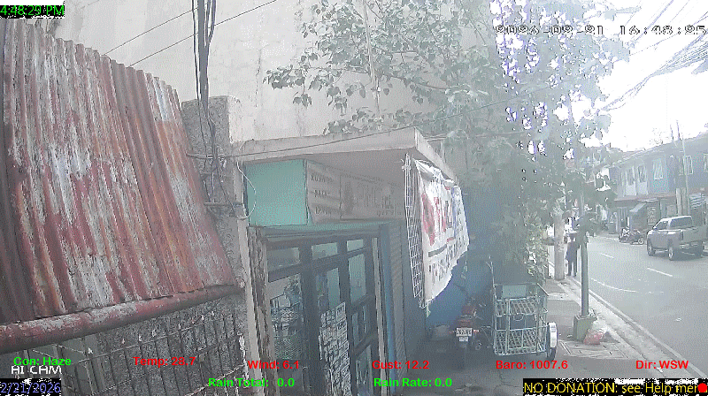 1 Rain season in the Philippines: June 1st to Oct 31st.   5 Estimated amount of water needed to replace the water used by plants and evaporation from the past week. (Negative numbers mean amount of water needed, positive numbers mean excess water is present).   6 Air Quality Index is provided by Luftdaten System esp8266 and is updated every 5 mins..   9 Solar Index represents either an absolute scale of solar energy (W/m²) using the station’s recorded maximum or a percentage of computed theoretical solar maximum using the station’s location and time of day. These indices differ most when the sun is low on the horizon. The current scale is shown, and will toggle if it or the icon is clicked.   10 Historical average only to day 21 of just the month of February for this station since 2016.   11 Historical average rain this season to day 21 of February for this station since 2016.