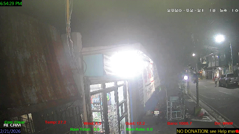 1 Rain season in the Philippines: June 1st to Oct 31st.   5 Estimated amount of water needed to replace the water used by plants and evaporation from the past week. (Negative numbers mean amount of water needed, positive numbers mean excess water is present).   6 Air Quality Index is provided by Luftdaten System esp8266 and is updated every 5 mins..   9 Solar Index represents either an absolute scale of solar energy (W/m²) using the station’s recorded maximum or a percentage of computed theoretical solar maximum using the station’s location and time of day. These indices differ most when the sun is low on the horizon. The current scale is shown, and will toggle if it or the icon is clicked.   10 Historical average only to day 21 of just the month of February for this station since 2016.   11 Historical average rain this season to day 21 of February for this station since 2016.
