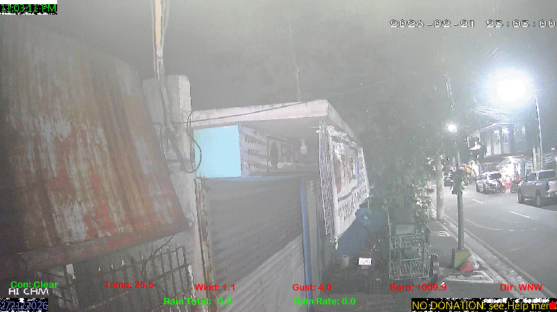 1 Rain season in the Philippines: June 1st to Oct 31st.   5 Estimated amount of water needed to replace the water used by plants and evaporation from the past week. (Negative numbers mean amount of water needed, positive numbers mean excess water is present).   6 Air Quality Index is provided by Luftdaten System esp8266 and is updated every 5 mins..   10 Historical average only to day 21 of just the month of February for this station since 2016.   11 Historical average rain this season to day 21 of February for this station since 2016.