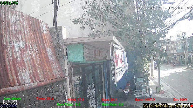 1 Rain season in the Philippines: June 1st to Oct 31st.   5 Estimated amount of water needed to replace the water used by plants and evaporation from the past week. (Negative numbers mean amount of water needed, positive numbers mean excess water is present).   6 Air Quality Index is provided by Luftdaten System esp8266 and is updated every 5 mins..   9 Solar Index represents either an absolute scale of solar energy (W/m²) using the station’s recorded maximum or a percentage of computed theoretical solar maximum using the station’s location and time of day. These indices differ most when the sun is low on the horizon. The current scale is shown, and will toggle if it or the icon is clicked.   10 Historical average only to day 21 of just the month of February for this station since 2016.   11 Historical average rain this season to day 21 of February for this station since 2016.