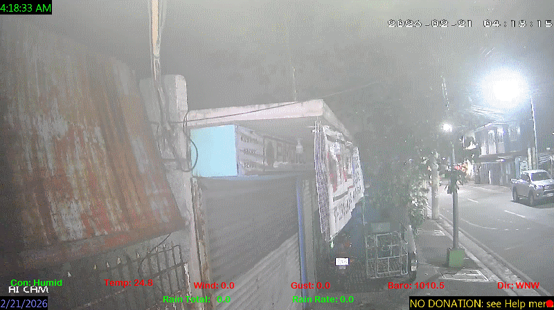 1 Rain season in the Philippines: June 1st to Oct 31st.   5 Estimated amount of water needed to replace the water used by plants and evaporation from the past week. (Negative numbers mean amount of water needed, positive numbers mean excess water is present).   6 Air Quality Index is provided by Luftdaten System esp8266 and is updated every 5 mins..   10 Historical average only to day 21 of just the month of February for this station since 2016.   11 Historical average rain this season to day 21 of February for this station since 2016.
