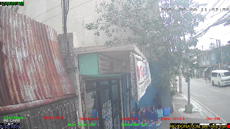 1 Rain season in the Philippines: June 1st to Oct 31st.   5 Estimated amount of water needed to replace the water used by plants and evaporation from the past week. (Negative numbers mean amount of water needed, positive numbers mean excess water is present).   6 Air Quality Index is provided by Luftdaten System esp8266 and is updated every 5 mins..   9 Solar Index represents either an absolute scale of solar energy (W/m²) using the station’s recorded maximum or a percentage of computed theoretical solar maximum using the station’s location and time of day. These indices differ most when the sun is low on the horizon. The current scale is shown, and will toggle if it or the icon is clicked.   10 Historical average only to day 20 of just the month of February for this station since 2016.   11 Historical average rain this season to day 20 of February for this station since 2016.