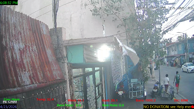 1 Rain season in the Philippines: June 1st to Oct 31st.   5 Estimated amount of water needed to replace the water used by plants and evaporation from the past week. (Negative numbers mean amount of water needed, positive numbers mean excess water is present).   6 Air Quality Index is provided by Luftdaten System esp8266 and is updated every 5 mins..   10 Historical average only to day 22 of just the month of April for this station since 2017.   11 Historical average rain this season to day 22 of April for this station since 2017.