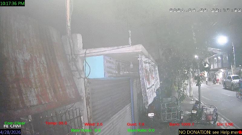 1 Rain season in the Philippines: June 1st to Oct 31st.   5 Estimated amount of water needed to replace the water used by plants and evaporation from the past week. (Negative numbers mean amount of water needed, positive numbers mean excess water is present).   6 Air Quality Index is provided by Luftdaten System esp8266 and is updated every 5 mins..   10 Historical average only to day 28 of just the month of April for this station since 2017.   11 Historical average rain this season to day 28 of April for this station since 2017.