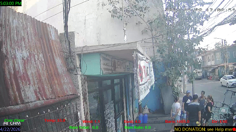 1 Rain season in the Philippines: June 1st to Oct 31st.   5 Estimated amount of water needed to replace the water used by plants and evaporation from the past week. (Negative numbers mean amount of water needed, positive numbers mean excess water is present).   6 Air Quality Index is provided by Luftdaten System esp8266 and is updated every 5 mins..   9 Solar Index represents either an absolute scale of solar energy (W/m²) using the station’s recorded maximum or a percentage of computed theoretical solar maximum using the station’s location and time of day. These indices differ most when the sun is low on the horizon. The current scale is shown, and will toggle if it or the icon is clicked.   10 Historical average only to day 22 of just the month of April for this station since 2017.   11 Historical average rain this season to day 22 of April for this station since 2017.