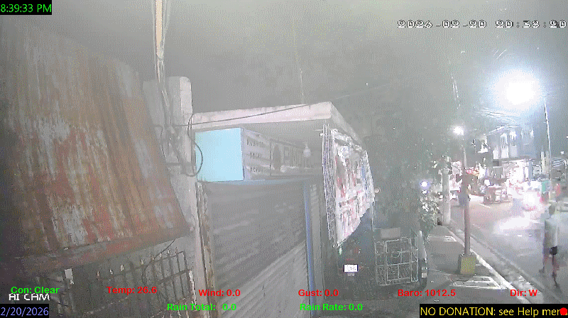 1 Rain season in the Philippines: June 1st to Oct 31st.   5 Estimated amount of water needed to replace the water used by plants and evaporation from the past week. (Negative numbers mean amount of water needed, positive numbers mean excess water is present).   6 Air Quality Index is provided by Luftdaten System esp8266 and is updated every 5 mins..   9 Solar Index represents either an absolute scale of solar energy (W/m²) using the station’s recorded maximum or a percentage of computed theoretical solar maximum using the station’s location and time of day. These indices differ most when the sun is low on the horizon. The current scale is shown, and will toggle if it or the icon is clicked.   10 Historical average only to day 20 of just the month of February for this station since 2016.   11 Historical average rain this season to day 20 of February for this station since 2016.