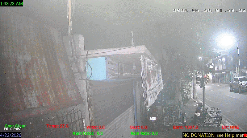 1 Rain season in the Philippines: June 1st to Oct 31st.   5 Estimated amount of water needed to replace the water used by plants and evaporation from the past week. (Negative numbers mean amount of water needed, positive numbers mean excess water is present).   6 Air Quality Index is provided by Luftdaten System esp8266 and is updated every 5 mins..   10 Historical average only to day 22 of just the month of April for this station since 2017.   11 Historical average rain this season to day 22 of April for this station since 2017.