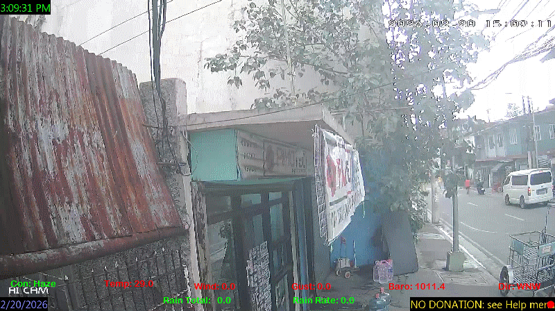 1 Rain season in the Philippines: June 1st to Oct 31st.   5 Estimated amount of water needed to replace the water used by plants and evaporation from the past week. (Negative numbers mean amount of water needed, positive numbers mean excess water is present).   6 Air Quality Index is provided by Luftdaten System esp8266 and is updated every 5 mins..   9 Solar Index represents either an absolute scale of solar energy (W/m²) using the station’s recorded maximum or a percentage of computed theoretical solar maximum using the station’s location and time of day. These indices differ most when the sun is low on the horizon. The current scale is shown, and will toggle if it or the icon is clicked.   10 Historical average only to day 20 of just the month of February for this station since 2016.   11 Historical average rain this season to day 20 of February for this station since 2016.