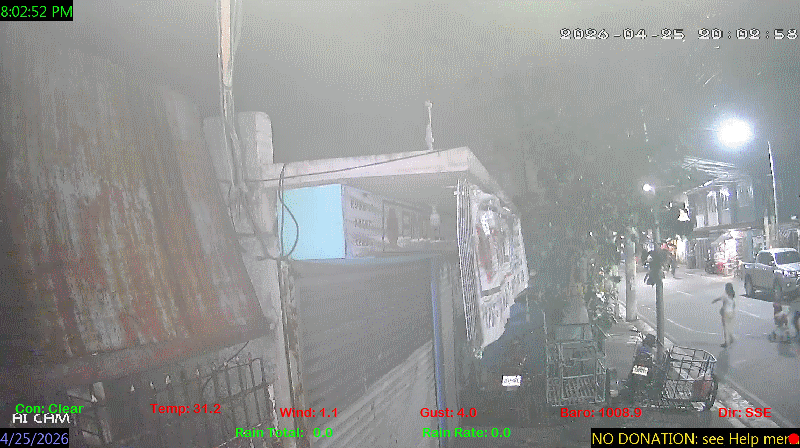 1 Rain season in the Philippines: June 1st to Oct 31st.   5 Estimated amount of water needed to replace the water used by plants and evaporation from the past week. (Negative numbers mean amount of water needed, positive numbers mean excess water is present).   6 Air Quality Index is provided by Luftdaten System esp8266 and is updated every 5 mins..   10 Historical average only to day 25 of just the month of April for this station since 2017.   11 Historical average rain this season to day 25 of April for this station since 2017.