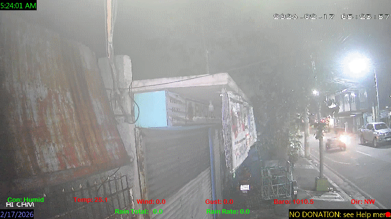 1 Rain season in the Philippines: June 1st to Oct 31st.   5 Estimated amount of water needed to replace the water used by plants and evaporation from the past week. (Negative numbers mean amount of water needed, positive numbers mean excess water is present).   6 Air Quality Index is provided by Luftdaten System esp8266 and is updated every 5 mins..   9 Solar Index represents either an absolute scale of solar energy (W/m²) using the station’s recorded maximum or a percentage of computed theoretical solar maximum using the station’s location and time of day. These indices differ most when the sun is low on the horizon. The current scale is shown, and will toggle if it or the icon is clicked.   10 Historical average only to day 16 of just the month of February for this station since 2016.   11 Historical average rain this season to day 16 of February for this station since 2016.