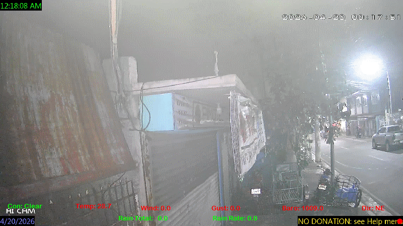 1 Rain season in the Philippines: June 1st to Oct 31st.   5 Estimated amount of water needed to replace the water used by plants and evaporation from the past week. (Negative numbers mean amount of water needed, positive numbers mean excess water is present).   6 Air Quality Index is provided by Luftdaten System esp8266 and is updated every 5 mins..   10 Historical average only to day 19 of just the month of April for this station since 2017.   11 Historical average rain this season to day 19 of April for this station since 2017.